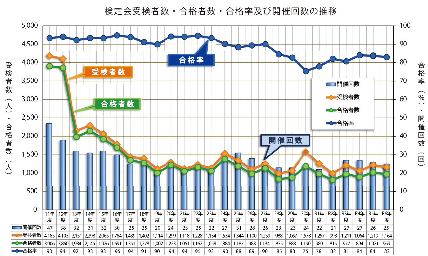 なお、既に国家資格に相当する水道事業者の資格を有していた技術者のために、経過措置講習会を平成9年度から平成11年度までの間、全国160都市で開催しました。